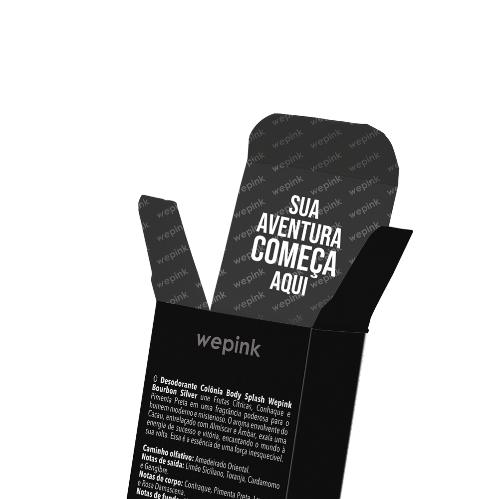 O Desodorante Colônia Body Splash Wepink Bourbon Silver une Frutas Cítricas, Conhaque e Pimenta Preta em uma fragrância poderosa para o homem moderno e misterioso. O aroma envolvente do Cacau, entrelaçado com Almíscar e Ambar, exala uma energia de sucesso e vitória, encantando o mundo à sua volta. Essa é a essência de uma força inesquecível.